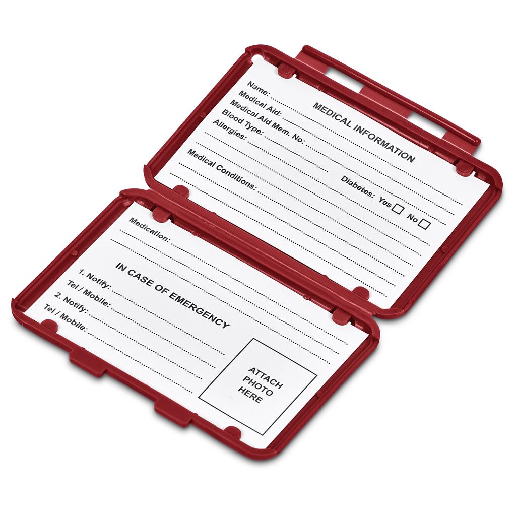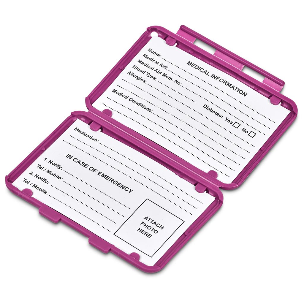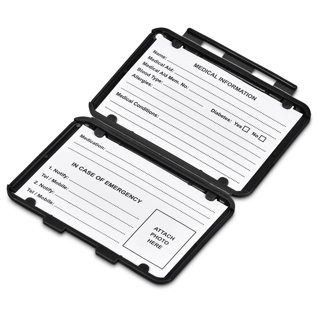 This clever medi-wallet is an immediate information resource for first responders, like paramedics at the scene of an emergency. Add your medical information, emergency contact details and photo to the cards inside, and clip the medi-wallet onto the seatbelt of your vehicle. The case can be branded with your logo or message, giving it prominent and regular exposure.