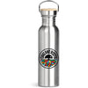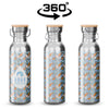 Fabriquée en acier inoxydable robuste, sans BPA et de qualité alimentaire, cette bouteille est dotée d'une poignée en acier pour un transport plus facile. Le couvercle est surmonté d'un bouchon en bambou pouvant être gravé au laser.