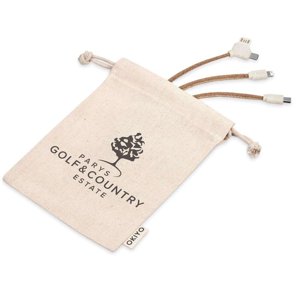 Du liège naturel et durable a été utilisé pour remplacer certains matériaux artificiels dans la fabrication de ce câble de charge 3 en 1. Il est livré dans une pochette à cordon en coton naturel, qui permet de ranger vos autres accessoires lors de vos déplacements.