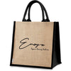 Ce sac de courses en jute de haute qualité est un sac écologique réutilisable idéal pour vos courses ou vos salons professionnels. Il est fabriqué en jute laminé durable et doté de poignées en corde de coton.