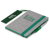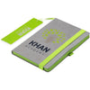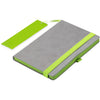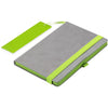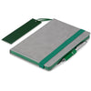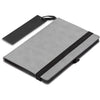 A capa cinzenta deste caderno oferece um ótimo espaço para o seu logótipo ou mensagem, que deve combinar idealmente com a cor do fecho elástico, do suporte para caneta, das margens das páginas e do marcador.