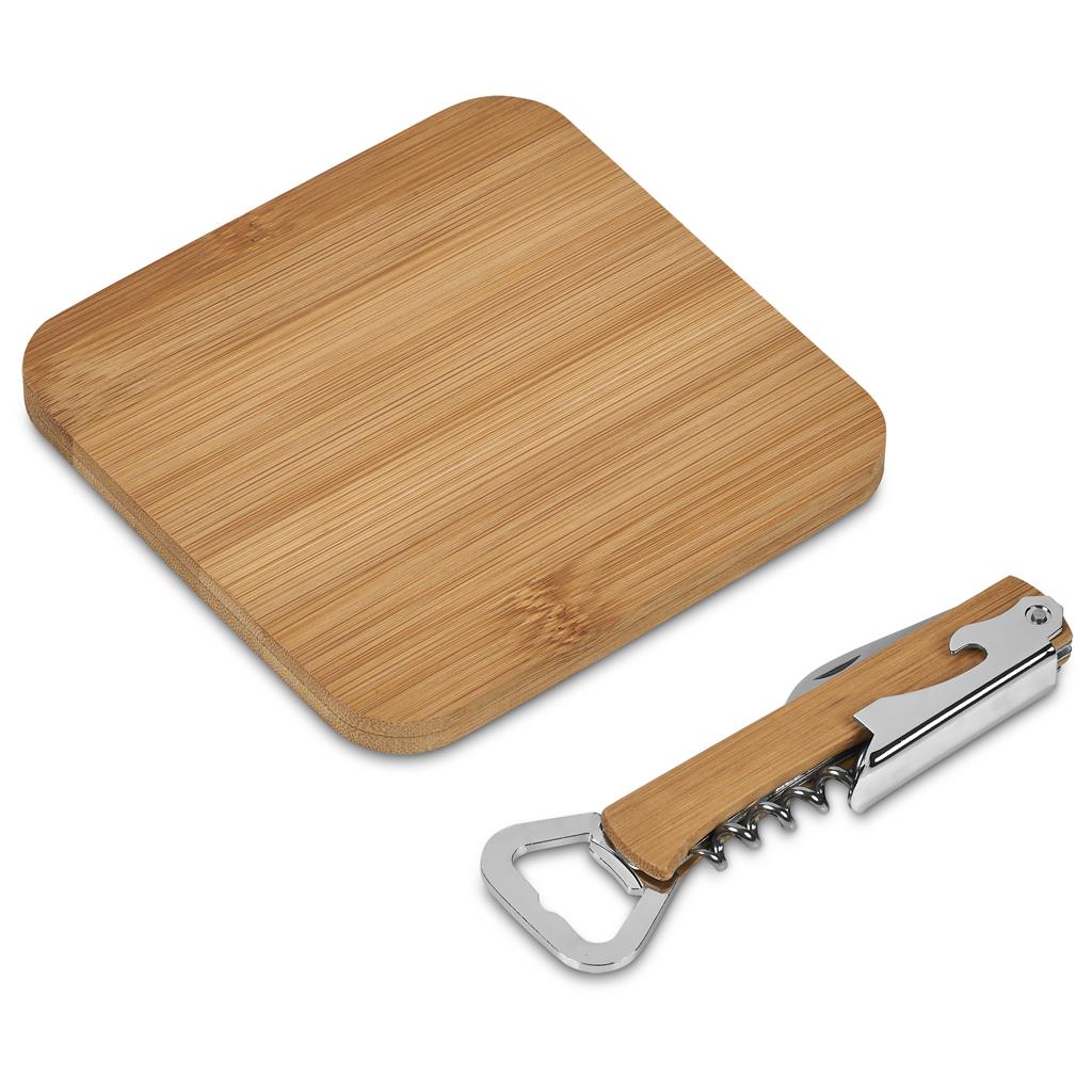 Um elegante refrigerador de vinhos e queijos de alta qualidade, com um amplo compartimento principal com duas divisórias amovíveis de velcro para acomodar três garrafas de vinho. Com as divisórias removidas, o compartimento principal comporta até 18 latas. A alça pode ser ajustada para uma alça de ombro ou para uma alça tipo mochila. Inclui uma pequena tábua de corte em bambu e uma ferramenta com um saca-rolhas, um abre-cápsulas e uma pequena lâmina de corte.